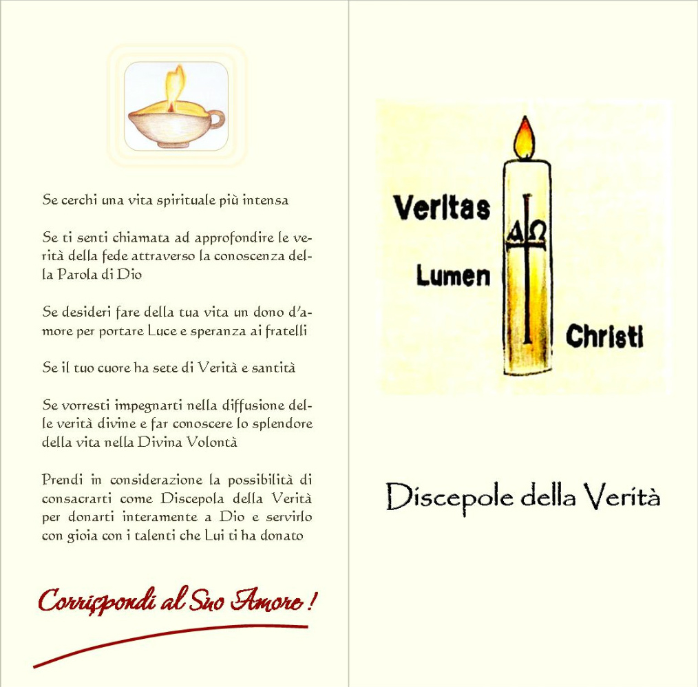 Le Discepole della Verità sono donne consacrate a Dio mediante i voti di castità, povertà e obbedienza.