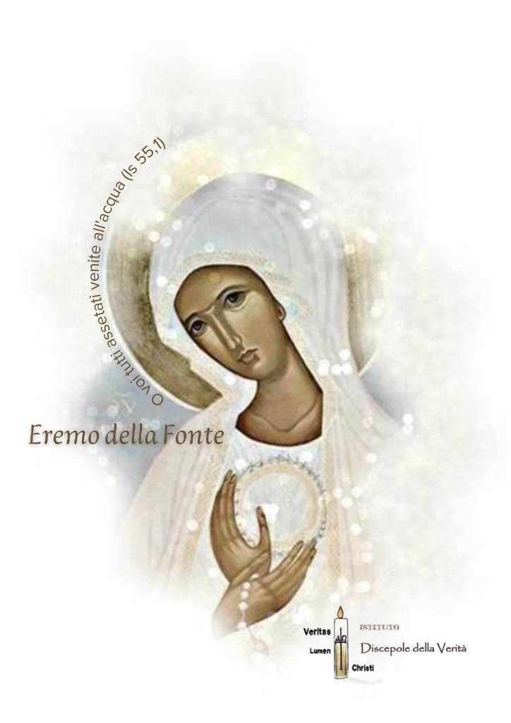 L’Eremo della Fonte è concepito dunque come luogo di spiritualità separato dal mondo dove chi cerca la pace del cuore può fare esperienza di vita eremitica insieme alle sorelle che vivono sul posto. Un luogo di fraternità dove gioire del Dono di Dio crescendo nelle conoscenze sulla Divina Volontà e dove vivere unicamente per ritornare al progetto originario del Creatore: essere in Gesù e con Gesù, piccoli figli che, uniti e accuditi dalla Mamma Regina, vivono felici tra le braccia del Padre.